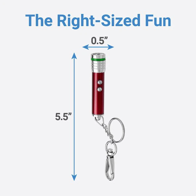 Your kitty loves a good laser light show, so bring on the excitement with this point-and-chase cat toy. It comes with a laser light and an LED light, plus 3 modesโpulse, strobe and steady light. Now giving your feline friends the daily exercise they need is easyโjust push a button to get playtime started! Press the button to change things up and keep cats chasing it and batting it as you move it around. The batteries are included so you can light up your kittyโs day, right out of the packaging. Plus, it comes with replacement batteries so you can keep the fun going.