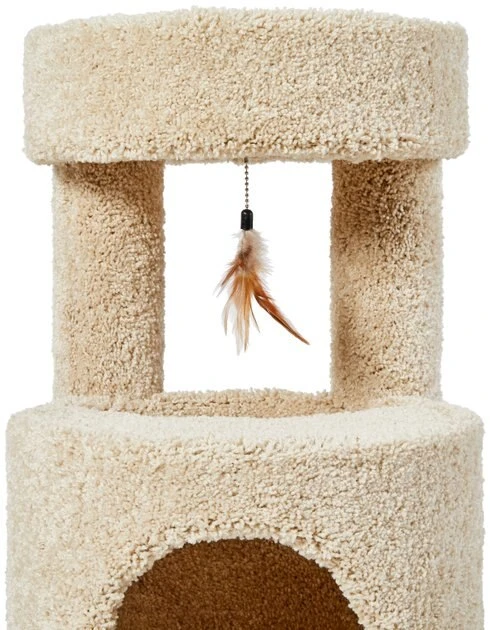 Every kitty needs a place to lounge away their lazy days. Give them a private place thatโs all their own with this two-level cat tree with a private, enclosed condo and a high, round perch too! This wood-framed cat tree is covered in household-grade carpet thatโs ideal for luxurious lounging, and it has a secluded, cozy condo theyโll enjoy kicking back and relaxing in too. Plus, thereโs a tall, round platform at the top for them to perch on in absolute kitty comfort.