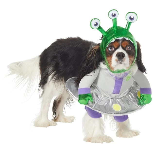 Your furry friendโs going to want to trick-or-treat across the galaxy when theyโre dressed up in this front walking alien costume, from Frisco, by Chewy! Suitable for both cats and dogs, so everybody can get a chance to dress like an alien, well, maybe except for humans. Designed to look like a walking alien whenever your cat or dog stands up, making for some of the cutest moments ever! It features a green alien with a spaceship for a body, and a multi-eye headpiece that looks just like an alien. It also comes in a variety of sizes so that every pet can get a chance to dress like an intergalactic being for Halloween!