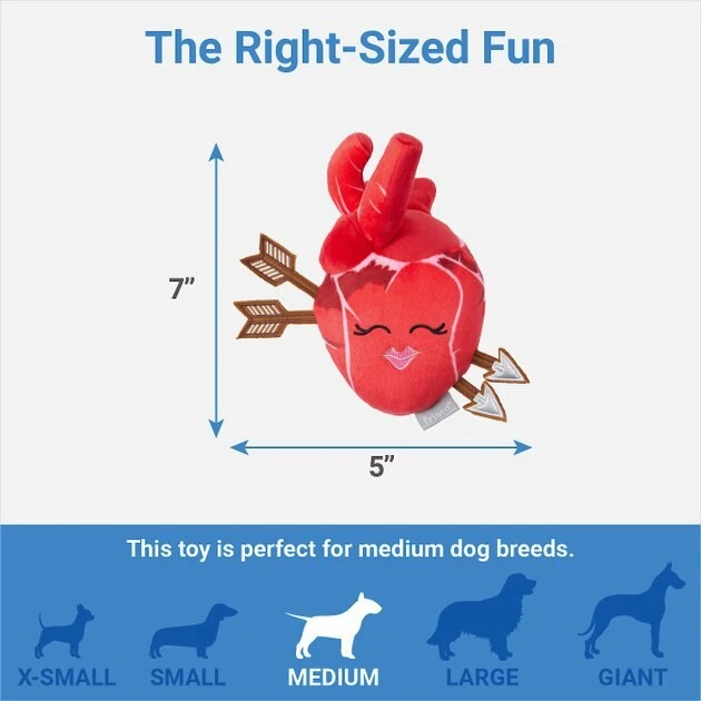 - Valentineโs Day anatomical squeaky heart toy is ready to level up playtime for your pooch.