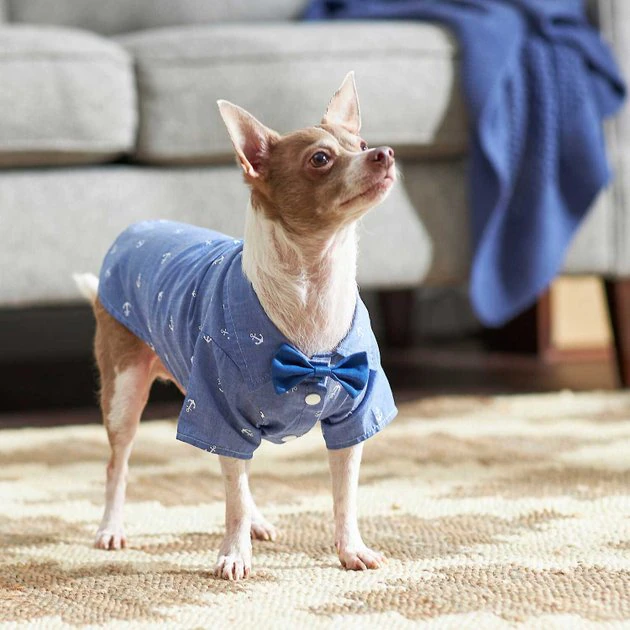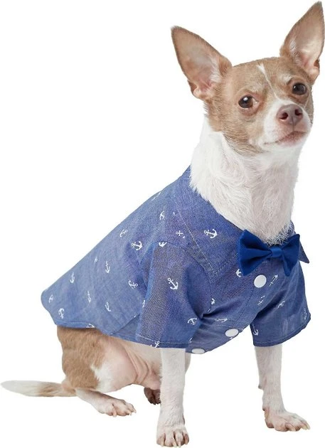 Frisco Anchor Print Chambray Dog & Cat Button Up Shirt