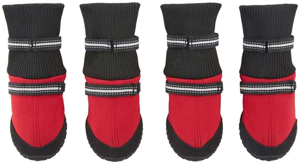 Think high tops but for dogs! These extended-cuff dog boots reach higher up your dogโs leg than normal boots and attach snugly with hook-and-loop fasteners. Their extended-length design covers more of their paws and lower legs while youโre out adventuring together for a little added protection against ice, snow and even hot pavement during the spring and summer. Whatever the weather, these boots have your pupโs paws covered.