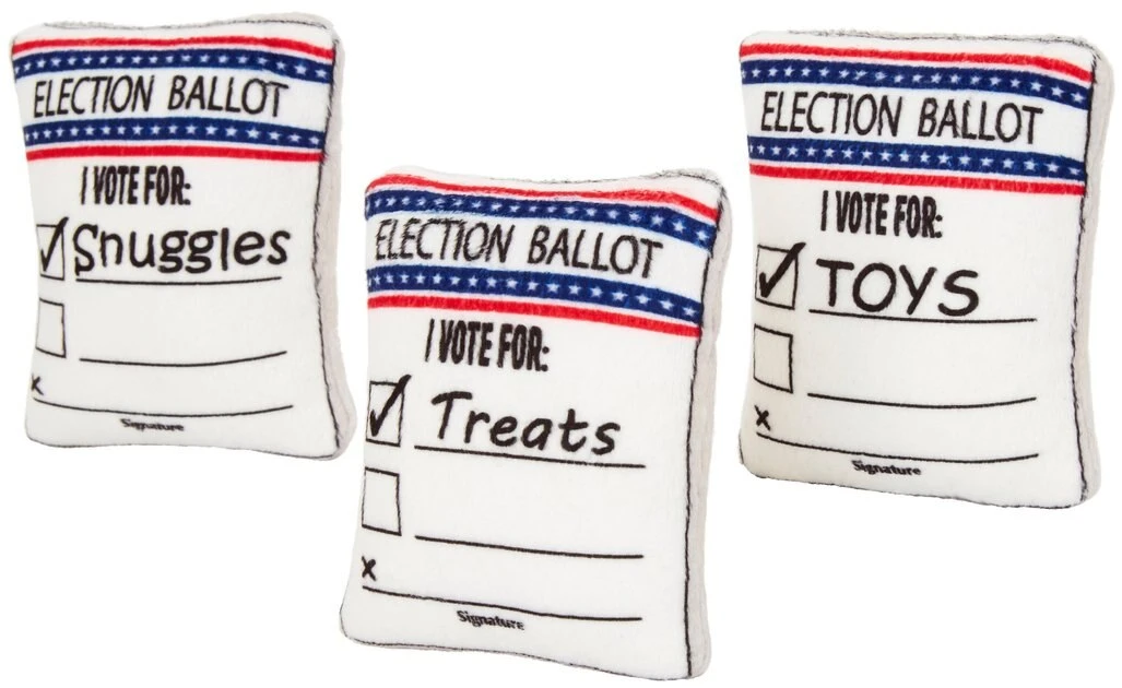 When your recount comes up short, pick up one of these refill three-packs for the Frisco Ballot Box Hide-and-Seek Puzzle Dog Toy. These plushie ballots are soft, squishy and squeaky, so theyโll get your dogโs attention and theyโre easy for your pup to pull out of the ballot box base. Keep the patriotic fun going with this three-pack of refills!