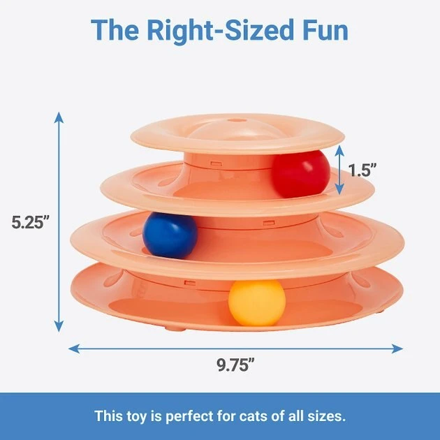 Includes 1 3-tier cat track, 3 plastic balls, and 2 interchangeable plush top parts.