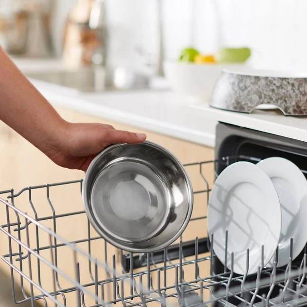 For a distinguished look, this bowl is the top of the line. It includes a removable stainless steel bowl that easily comes out of the melamine, black marble-look base when it’s time to give your dog’s dinnerware a wash. The base has an elegant marble design that looks great in your home and helps keep their bowl in place to cut down on doggie dinner messes. Available in three sizes, you’re sure to find a bowl that fits your dog’s appetite and your home décor.