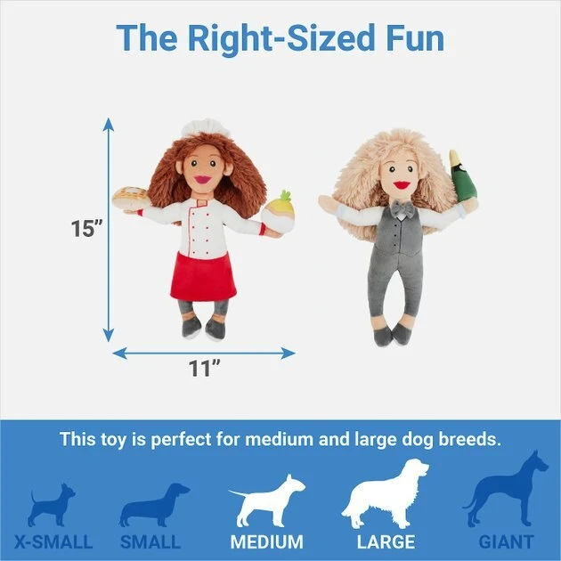 - Chef and waitress toys include four sewn-in squeakers that for sure will make your dogโs tail wag with joy.