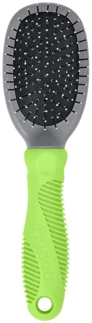 Everybody likes a softer, shinier coat to pet. Make sure your petโs fur is always snuggleable and clean with the Pin Pet Brush by Frisco. The gentle, plastic pins have rounded tips and glide through your petโs fur, helping you remove tangles, dirt and loose hair, while fluffing your petโs coat. The ergonomic handle design makes for a better brushing experience by giving you more control and better grip. With regular use, this brush can help you maintain your petโs soft, shiny coat.