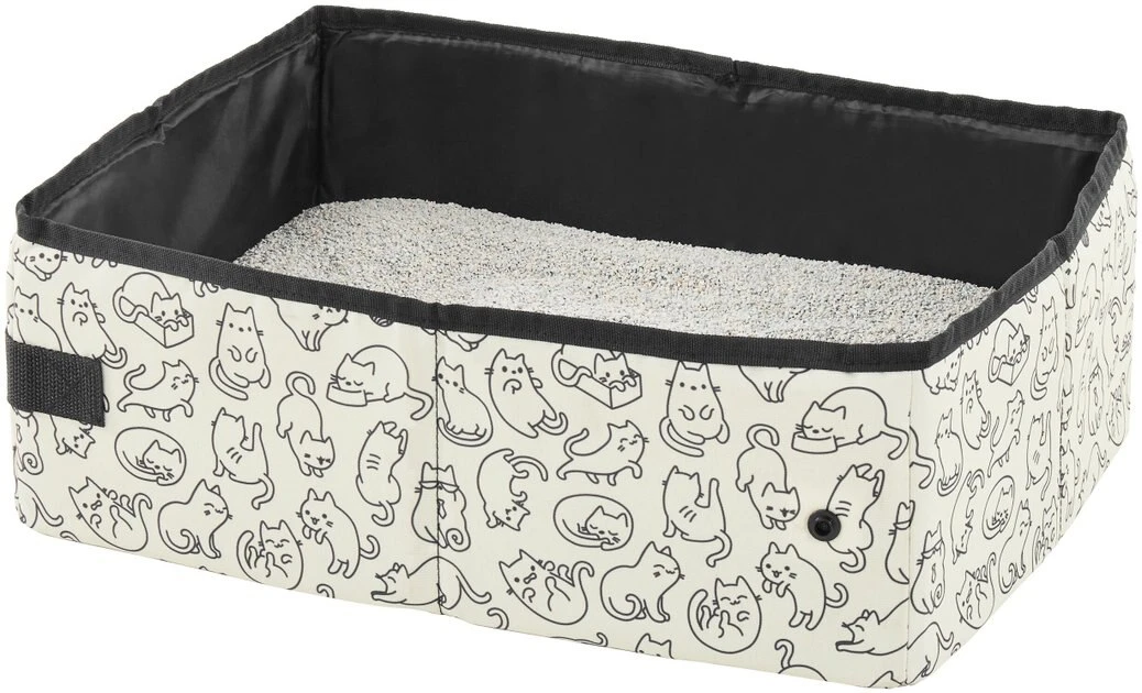 - Includes a collapsible and water-resistant travel litter box that snaps shut to cut down on messes during travel.