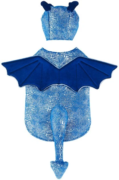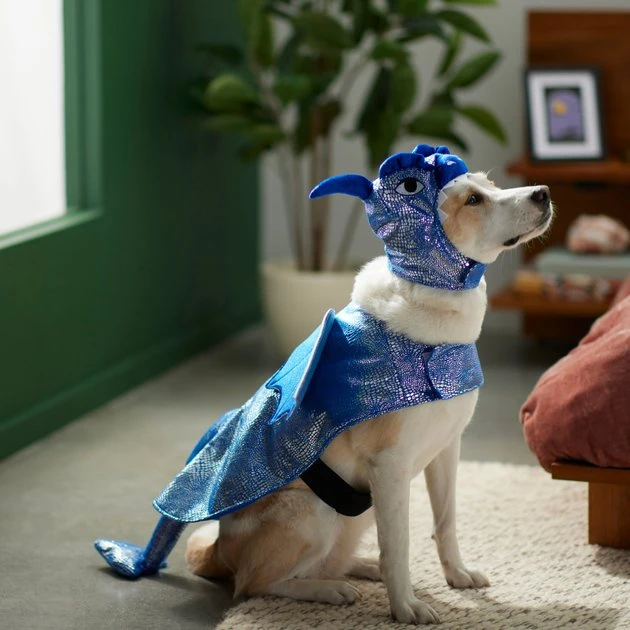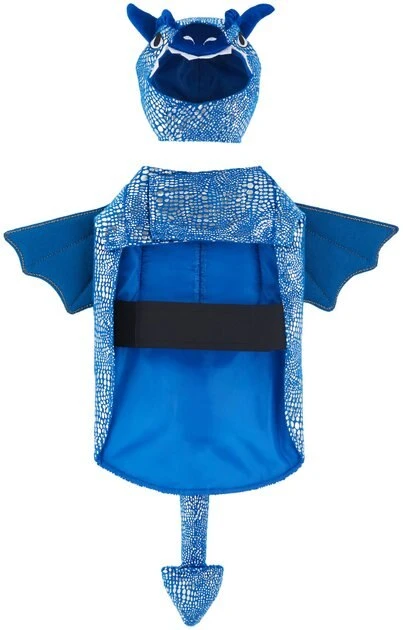 With everything but the fire breath, the Frisco Dragon Dog & Cat Costume will have your pet roaring with Halloween spirit! This two-piece costume includes a dragon body, complete with sparkly scales, broad wings and a pointed tail. The headpiece has horns and big teeth, and it sits over your dogโs head with their cute face poking through. And both pieces are built for comfort, with hook-and-loop fasteners to help you get a nice fit without so much fuss during dress up. Wherever your adventures take you this Halloween, your pup will look just like the ferocious magical creature they pretend to be during playtime!