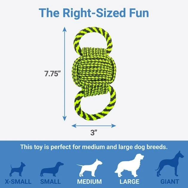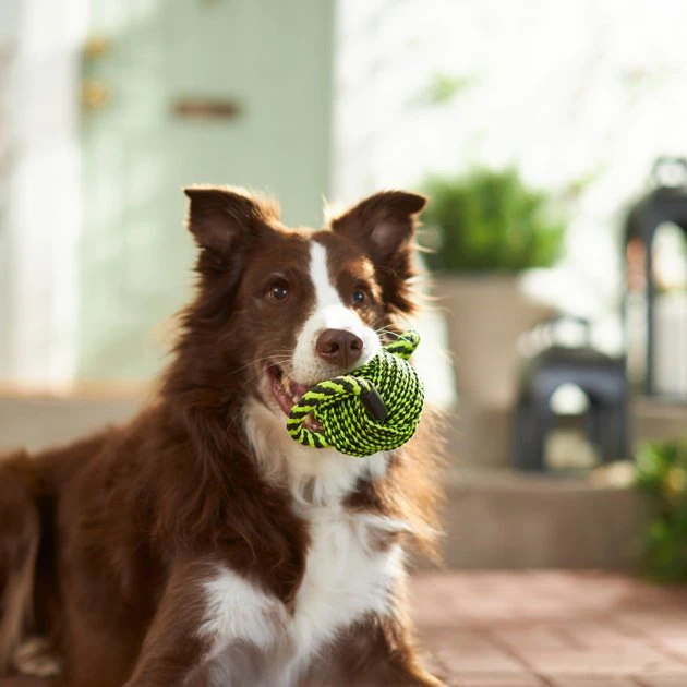 This toy doubles the fun with two of your dogโs favorite things: a ball and a rope toy! In the middle, thereโs a big, chunky knot dogs will love to chomp on. On both sides, there are handles for both of you to get a handle on all the fun. Plus, thereโs a squeaker in the middle knot so your pup can have all the loud, rambunctious fun they love.