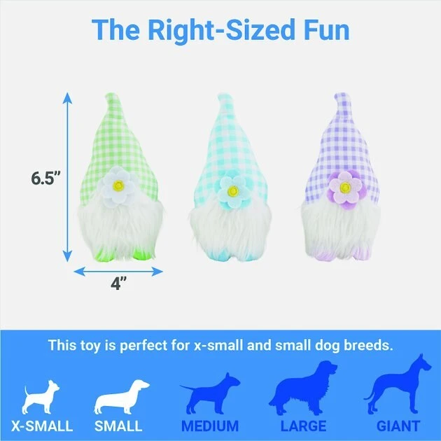 Frisco Easter Gnomes Plush Squeaky Dog Toy, 3 count
