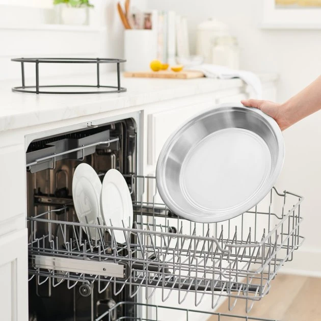 Elevate your petโs dining experience. This bowl is raised with an iron stand so your pup or kitty can eat and drink from new heights. Made of durable stainless steel, itโs the perfect bowl for everyday use. It has a shallow and wide design thatโs easy for your pet to access, and comes in various capacities from 5.5 cups to 18 cups. The paw print design adds a touch of style, and you can hand wash it or toss it in the dishwasher for easy cleaning.