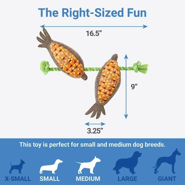Frisco Fall Harvest Corn Plush with Rope Plush with Rope Squeaky Dog Toy