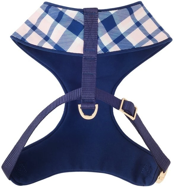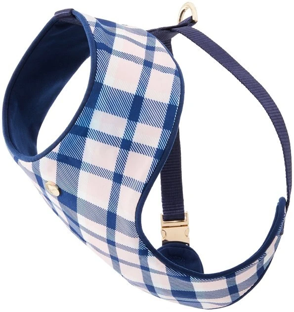 Upgrade your pupโs daily walks with a harness that combines function with a fresh print for fall. Covered in soft padding for a comfy fit whether itโs a quick run, long jaunt, or scenic stroll. The back clip design with gold metal D-ring makes it easy to leash up and head out. Bring on the selfies! Pink plaid is so fall-ready and Insta-worthy.