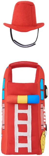 - Looks just like a firetruck, complete with a firemanโs hat to finish off their Halloween look.