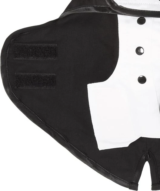 - Uses hook and loop fasteners that are designed to not trap your pup’s hair so they can be comfortable while wearing their handsome tuxedo.