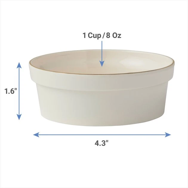 The Frisco Melamine Dog Bowl with Gold Trim is the height of simple, doggie dining. With its soft, cream color and elegant gold trim around the top, this bowl adds a bit of clean, stylish design to your dogโs dinnerware and fits in great with your home dรฉcor. Available in three sizes, youโre sure to be able to find a bowl to fit your dogโs appetite.