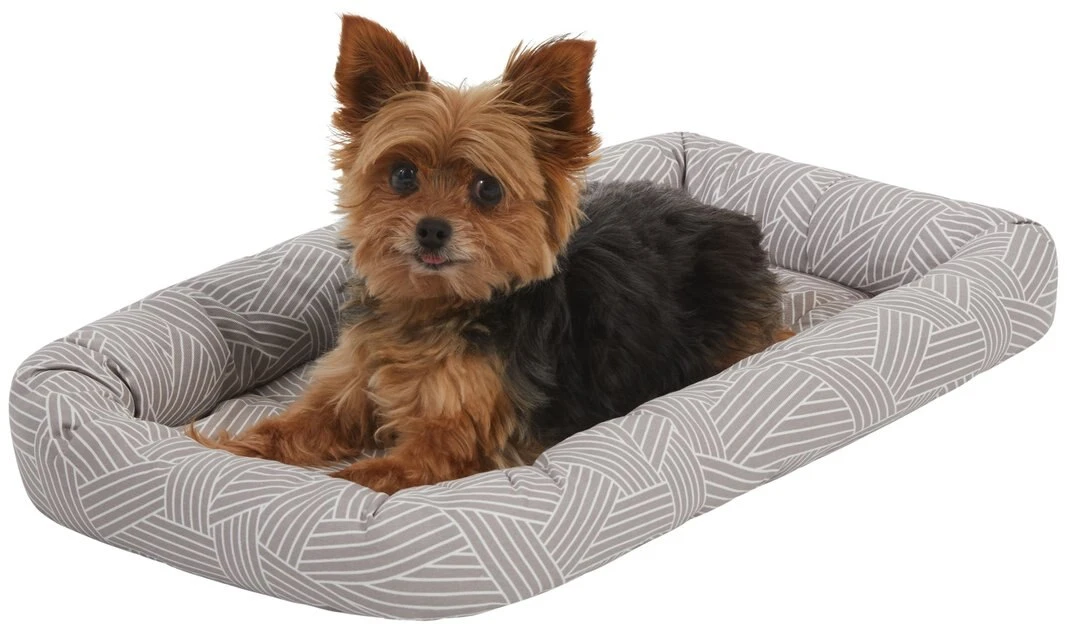 The Frisco Gray Basket Weave Pet Bed & Crate Mat makes your pet’s crate, carrier, kennel, favorite spot or home away from home even cozier. The quilted bed is made with ultra-soft material with a foam pad on the bottom for extra cushioning. As your pet curls up and nestles into the perfect position, he can rest his head on the thick, comfy bolster that’s filled with polyester fiber for added support. No matter whether you’re traveling or simply crate training, your faithful companion will feel right at home with this snug, cozy mat. It also makes a quick and easy bed on its own and a safe spot for your pet when you’re on the go. It comes in a variety of sizes to meet every pet’s needs and fits most standard crates or carriers from 18 inches up to 54 inches. And for easy cleaning, you can throw it in the washer and dryer.