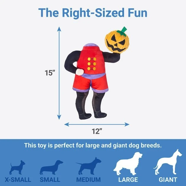 When fun rides on Halloween, your pup will be galloping alongside their favorite spooky toy! This headless rider toy is soft, plush and squeaky, and he’s modeled after one of the most famous Halloween characters of all. So spooky! Give him a squeak, toss him and watch your pup race off after their new best friend. Giddy up for the Halloween good times!