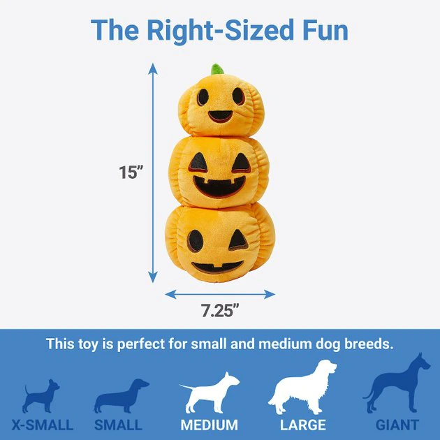 Frisco Halloween Jack-o-Lantern Tower Bottle Cruncher Plush Squeaky Dog Toy