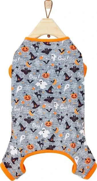 Step up the coziness this Halloween with Friscoโs Halloween Patterned Dog & Cat PJs. Theyโre made of soft, lightweight cotton-poly blend thatโs perfect for day or night wear. Theyโre easy to put on and take off with a slip-on design and ribbed, comfortable sleeves. Plus, theyโre available in six sizes for pets of all sizes to get in the spooky spirit, no matter their breed. And if thatโs not enough, they can help limit excess shed and dander around your house, keeping it trapped inside and off your couch, bed and carpet.
