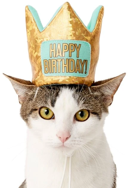 - The perfect B-day hat for your pup or kittyโa plush, sparkly crown!