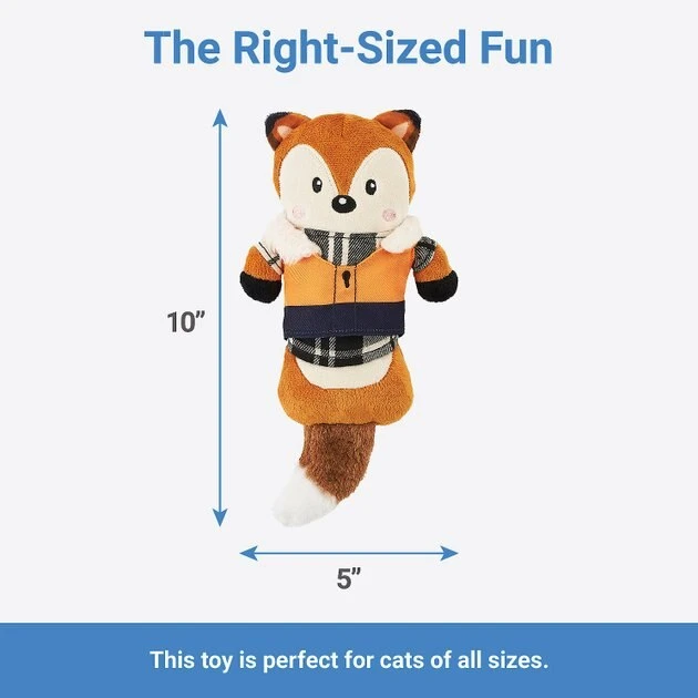 The fall festivities kick off for your feline when this hipster fox kicker toy joins the party! This toy has the perfect shape and texture for your cat to wrestle and โbunny kickโ with their hind paws, and a soft, plush fabric to snuggle up with for catnaps. Plus, it has catnip and crinkle paper inside to get your kitty excited about playtime and keep them wrestling with their new favorite friend all through the season!