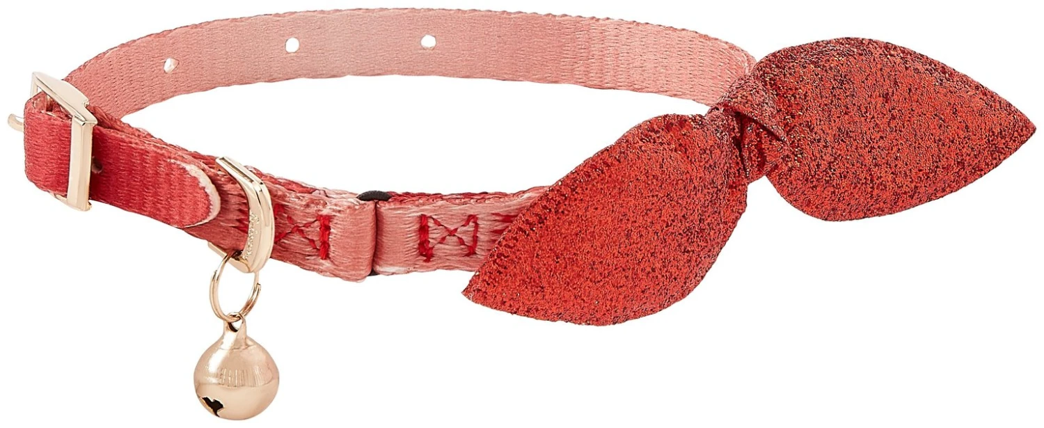 The purr-fect holiday kitty collar does exist, and here it is—it even has a bow on it! It’s made with ombre-effect patterned polyester webbing and has a big, glittery bow attached to add a little extra festive fashion. It’s got a gold buckle, plus it’s designed with a unique stretch section in case of snags and for easy removal. Dress your kitty to impress this holiday season with this bow collar.