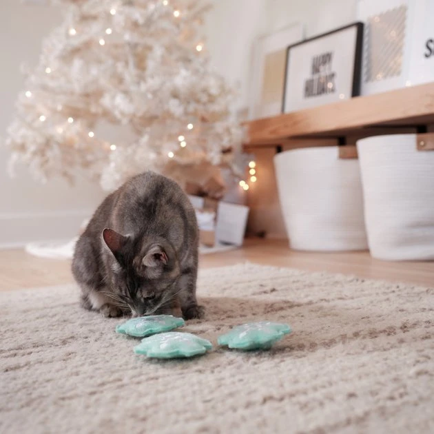 Every furry friend is unique, just like the snowflakes that fall during the holiday season. The only problem with snowflakes is cats canโt chase them because once theyโre caught, they melt. But not these! With this three-pack of snowflake kitty toys, the fun never melts away. Theyโre covered in polyester fabric that cats love to claw, theyโve got catnip stuffed inside that drives furballs wild and they make great holiday gifts to show your cat just how thankful you are for their friendship. Pick up a toy just as unique as they are this holiday season, with a little help from Frisco!