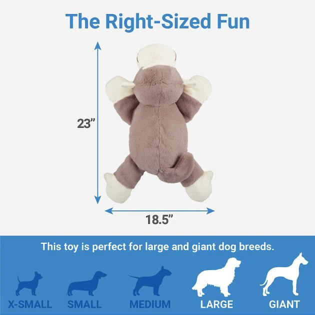 Get ready for some fun of epic proportions with the Frisco Jumbo Plush Monkey Dog Toy. Go aheadโmonkey around with this jumbo-sized plush critter! It features a built-in squeaker to turn up the excitement and ultra-soft plush fabric for cuddly softness. This dog-friendly toy has lining made of nylon and a touchable texture, so itโs a great nap buddy too.