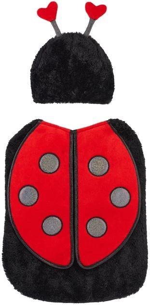 How can your lovebug get cuter? With the Frisco Ladybug Dog & Cat Costume, of course! This two-piece costume comes with a ladybug body that attaches with hook-and-loop fasteners at the neck and belly, and itโs made from furry fabric with red velvet wings attached. The separate headpiece really tops things off with two heart antennae and a hook-and-loop chin strap for less fuss when itโs time to dress up. Be the talk of the trick-or-treat walk with this adorable costume from Frisco!
