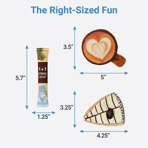 This super fun, pre-packaged toy bundle is the perfect gift for a coffee lover! This adorable coffee-themed design includes five fun toys for a wide variety of playtime options to suit your catโs taste. Theyโre all covered in soft, plush fabric thatโs loads of fun to bat, bite, kick and claw. Plus, theyโre all stuffed with exciting catnip to get your catโs attention and keep the good times rolling for hours and hours. Bring out your furry friendโs inner foodie with Frisco!