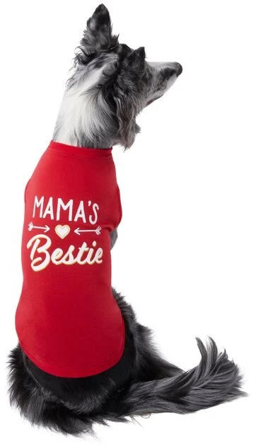 - T-shirt reads โMamaโs Bestie,โ making it a great staple in your petโs wardrobe.