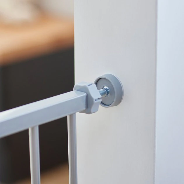 Always check the gate and discontinue use if any parts are missing, worn or damaged. Check regularly to make sure all hardware and mountings are tightened securely. Wash with mild detergent. Donโt use any abrasive cleaners or bleach.