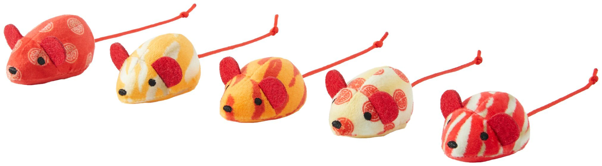 - Traditional Chinese New Year plush mice feature crinkle paper and catnip.