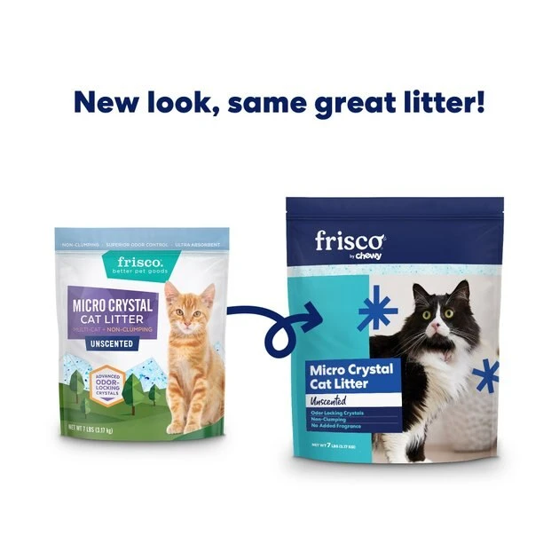 - Odor-busting, kitty-preferred litter from Frisco, by Chewy. Micro crystals absorb liquids and lock in odors on contact.