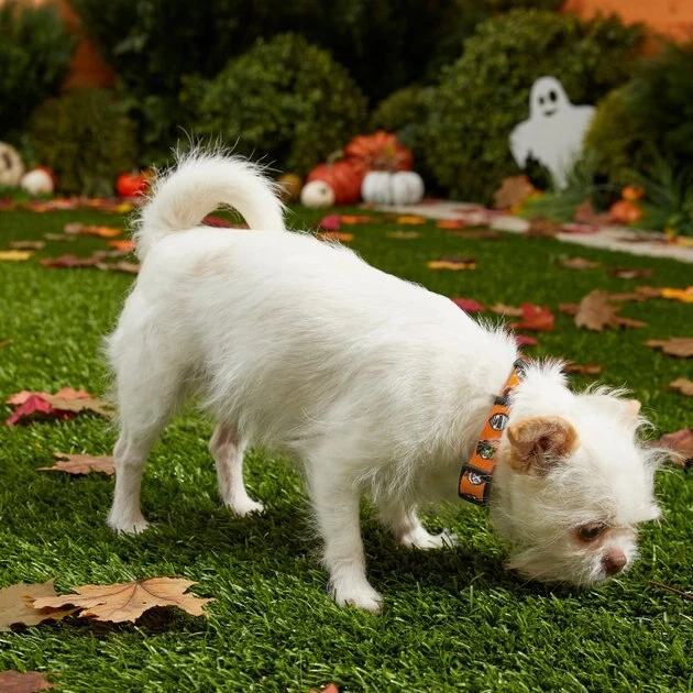 Your pup can paw-ty under a full moon in style with the Frisco Monster Bash Dog Collar. Designed for everyday wear, these collars combine comfort, security and fashion. These collars are made with durable, high-quality polyester that has an Ultra-Weldโข seal, strength-tested to withstand up to seven times the maximum recommended weight for each size. Easy to put on, it has a plastic buckle with rounded edges for comfort and a nickel-coated D-ring. They come in different sizes with adjustable slides for a custom fit, even for growing puppies. Plus, all sizes come with a separate ring to attach an ID tag.