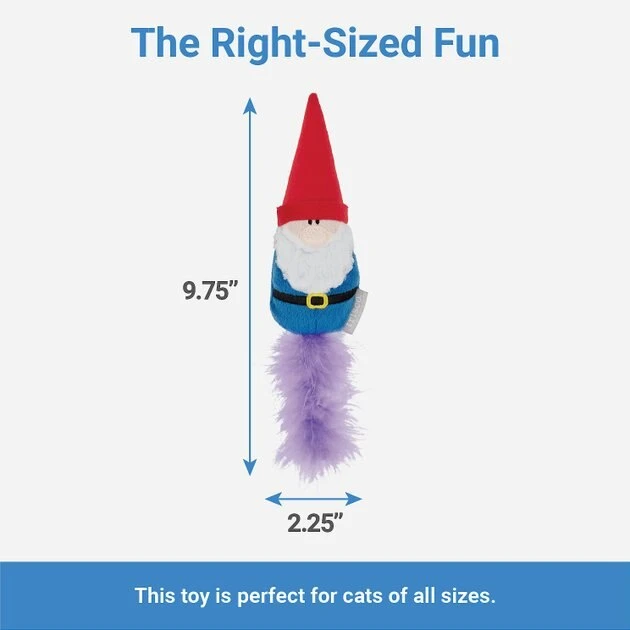 Get ready to make playtime magical! This noteworthy gnome provides the best of both worldsโthe perfect shape for cats to wrestle and โbunny kickโ with their hind paws, and the crinkly sounds that drive them wild. Youโll know itโs your felineโs fave when you see them carrying it around the house. The furry tail adds motion to stimulate your kittyโs hunting instincts, so toss it to give them the thrill of the chase. Itโs also spiked with USA catnip for even more exciting play.