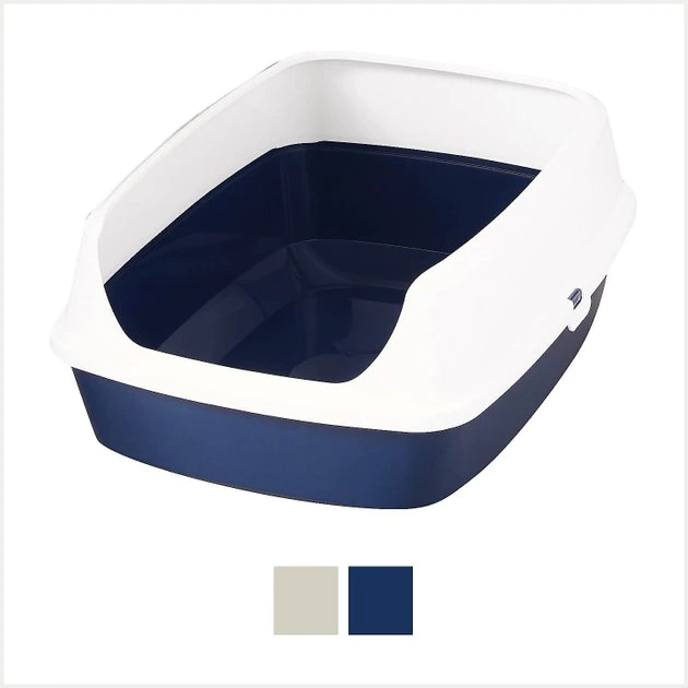The Frisco Open Top Cat Litter Box provides a roomy yet private place for cats to do their business. To keep litter and spray inside the box, thereโs a rim around the sides and back wall that also acts as a privacy shield. Cats can step in and out of the box easily through the lowered front side. The removable top rim and open-box design make it easy to scoop the litter and spot clean small messes. This durable litter box is made with high-quality plastic, so itโs ready for plenty of digging and pawing around. You can choose between navy or warm gray colors in a large size that gives cats plenty of room to move about comfortably. Itโs BPA-free and can even be recycledโmaking it perfect not only for cats, but also for eco-minded pet parents.