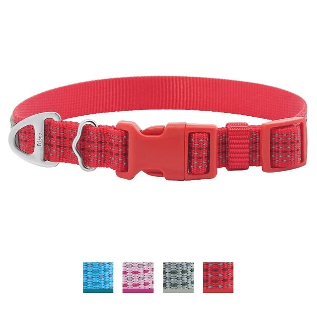 Explore the great outdoors with this Frisco Outdoor Frisco Nylon Collar, Flamepoint Orange, Small-Neck: 10-14-in, Width: 5/8-in + Rope Leash With Padded Handle, Sunset Orange, 6-ft bundle! The quality, durable collar is made with ultra-reflective nylon webbing for low-light conditions, keeping your dog visible, and making dusk and nighttime walks safer. It also features a lightweight buckle, a D-ring for leash attachment and a separate tag ring too. Attach the included leash using the lobster clip. This leash is just like a classic rope leash with durable, secure nylon rope with ultra-reflective accents to increase your dogโs low-light visibility. That means safer dusk and nighttime walks. The loop handle has extra padding, so it feels great wrapped around your wrist or in your hand. This bundle is grrr-eat for all your outdoor ex-paw-ditions!
