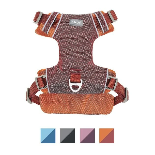 Explore the great outdoors with your furry buddy with the Frisco Outdoor Lightweight Ripstop Nylon Harness, Flamepoint Orange, Small, Neck: 13 to 19-in, Girth: 16 to 22-in + Heathered Dog Leash, Flamepoint Orange, Small – Length: 6-ft, Width: 5/8-in bundle! The harness is made with lightweight, ripstop nylon and the straps are made with heathered nylon webbing. Plus, it has ultra-reflective accents for better low-light visibility, lightweight X-style plastic buckles and dual D-rings on the chest and back so you can attach the included leash wherever works best for your dog. The Frisco Heathered Nylon Dog Leash has a lobster clasp at the end and a D-ring near the handle so you can easily attach a waste bag dispenser. Your pup is going to look great with this harness and leash duo while she enjoys all the outdoorsy fun!