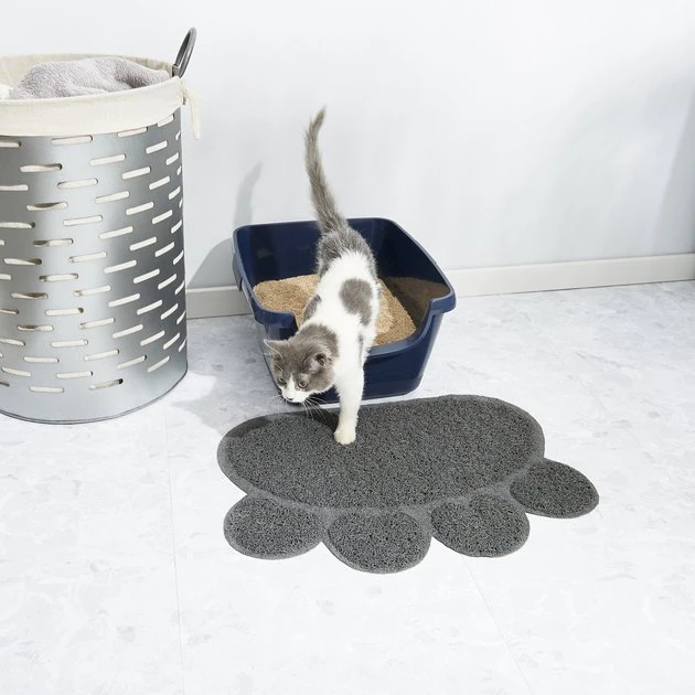 Give litter the paw, as in the paw-shaped mat designed to catch and trap it!