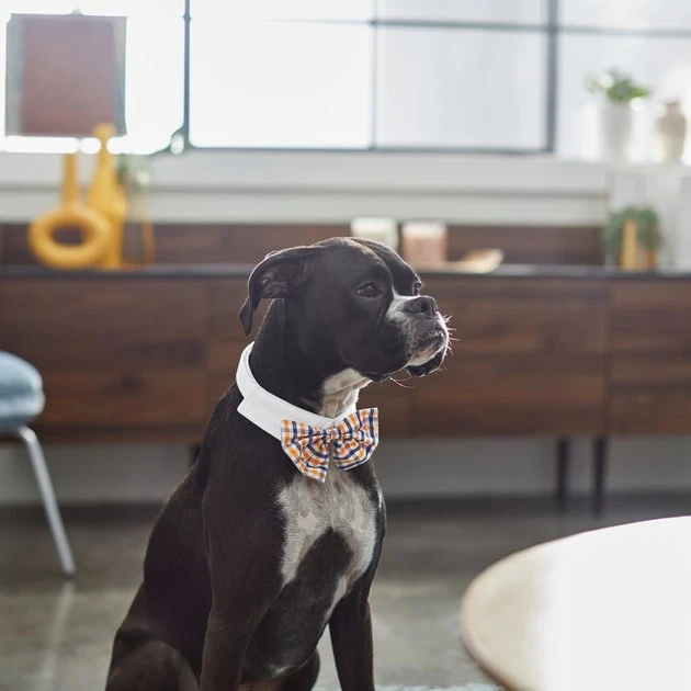 Frisco Plaid Dog & Cat Bow Tie, Orange & Blue