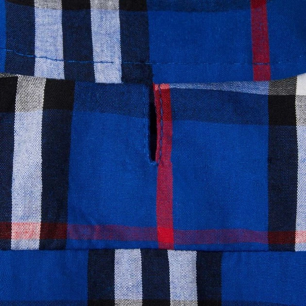 - Classic navy plaid button up shirt for pets who like to strut their style.