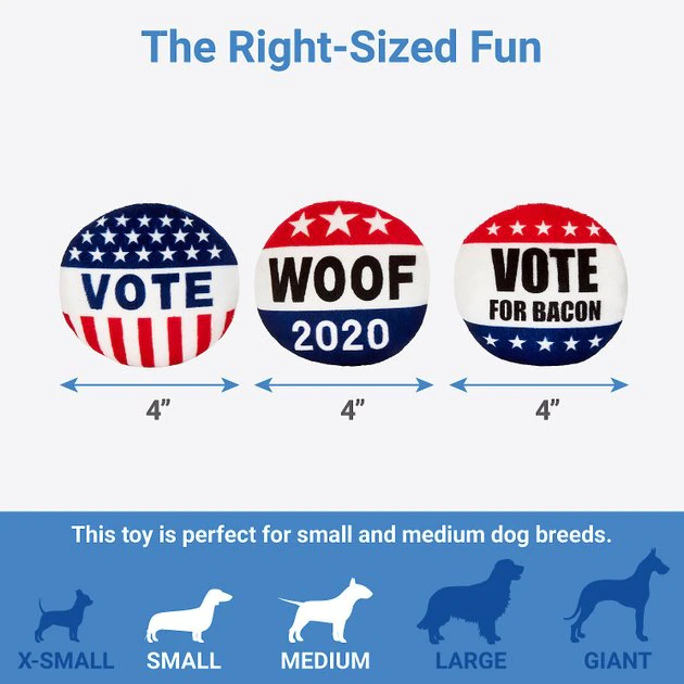 - Comes in a three-pack of voting-themed toys so your dog will always have a fresh plushie on hand.