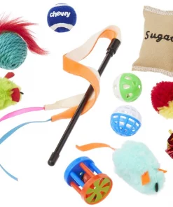 - A bundle of excitement just for cats—comes with 12 assorted toys to bring on the playtime fun.