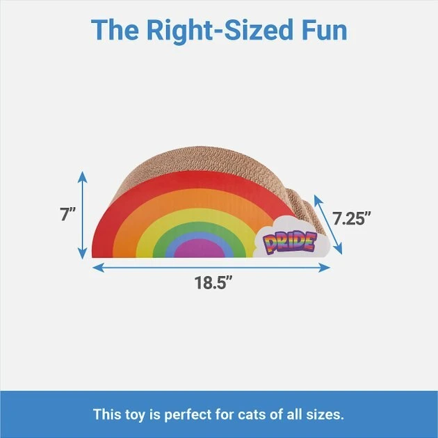 Kitty may be celebrating Pride, but that wonโt get in the way of sinking their paws into this awesome rainbow cat scratcher! The giant rainbow and its โPrideโ clouds are practically begging to be used by your feline friend. Not only is it super satisfying, but itโll also help them develop better scratching habits. Your sofa will thank you later. Sprinkle on a little of the included catnip to really get them interested.