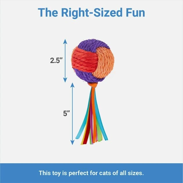 - Rainbow ball is wrapped in sisal and features dangly multicolored tails that look great flying through the air, rolling on the ground or bobbing up and down for your cat.