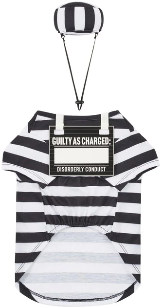 Frisco sentences your pet…to a Halloween filled with cuteness! The Frisco Prisoner Dog & Cat Costume is a complete look to take Halloween fun to a new level. This costume includes a pullover-style shirt with a “K9INM8” graphic, a separate hat with adjustable elastic ear and chin straps, and a dry-erase board that says “Guilty as Charged: Disorderly Conduct.” Whether you’re heading to a Halloween party or around the block for some trick-or-treating, everyone will know your pet’s true crime: being too cute!