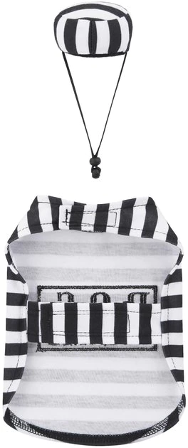 Spring your small pet friend for some Halloween mischief! This tiny prisoner costume is perfectly sized to get your guinea pig in on the fun. It comes with a classic black-and-white striped shirt with an embroidered back patch that reads โGUINM8.โ How cute is that? Itโs easy to put on, so donโt worry about a fuss. Just strap it on with the hook-and-loop fasteners for a comfy fit, and then put on the separate hat piece and adjust the chin strap. Just like that, your small pet is ready for a Halloween party, a furry photo op, or to just enjoy the spirit of the spooky season.